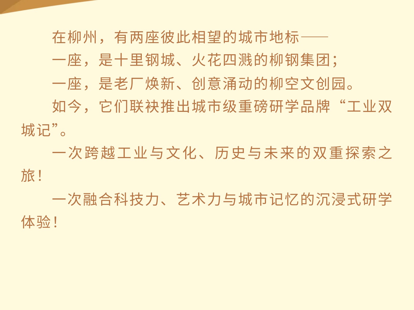 柳鋼+柳空|“工業雙城記”聯合研學品牌震撼上線! 發布時間:2025年04月25日 16時來源:本站原創瀏覽:97 人次