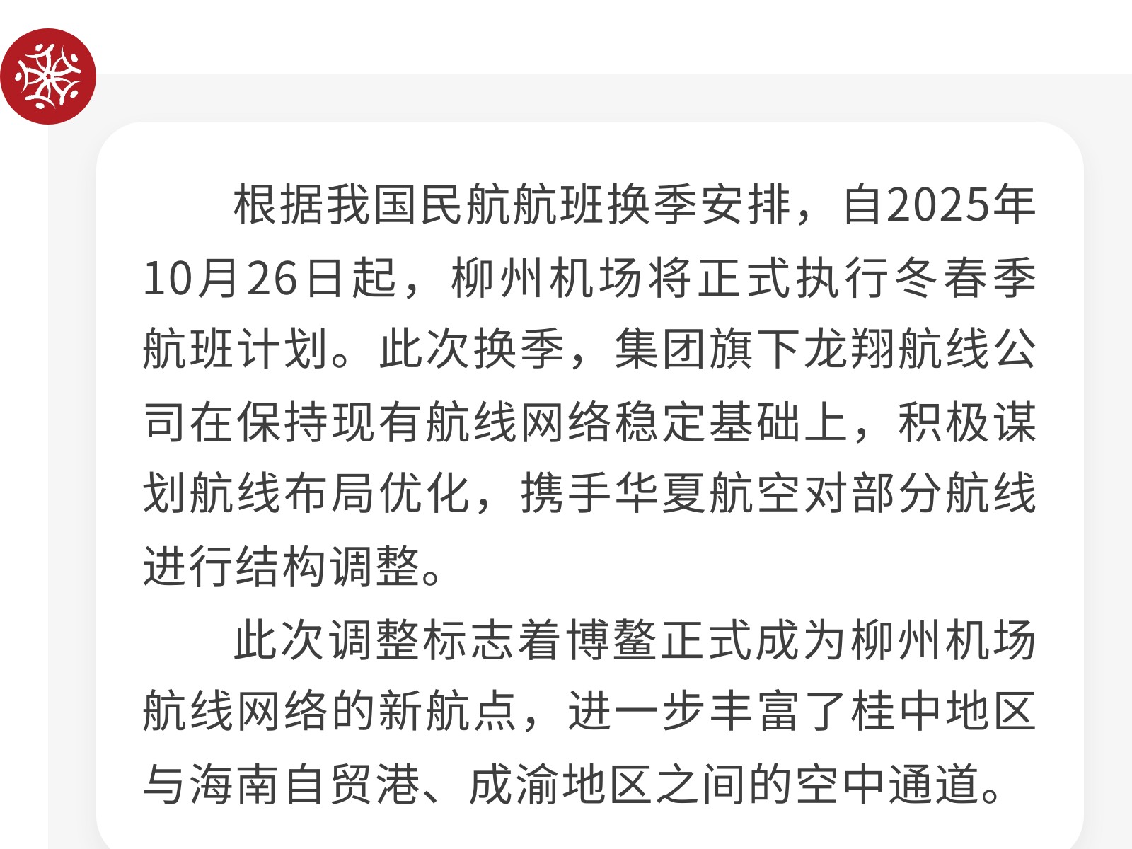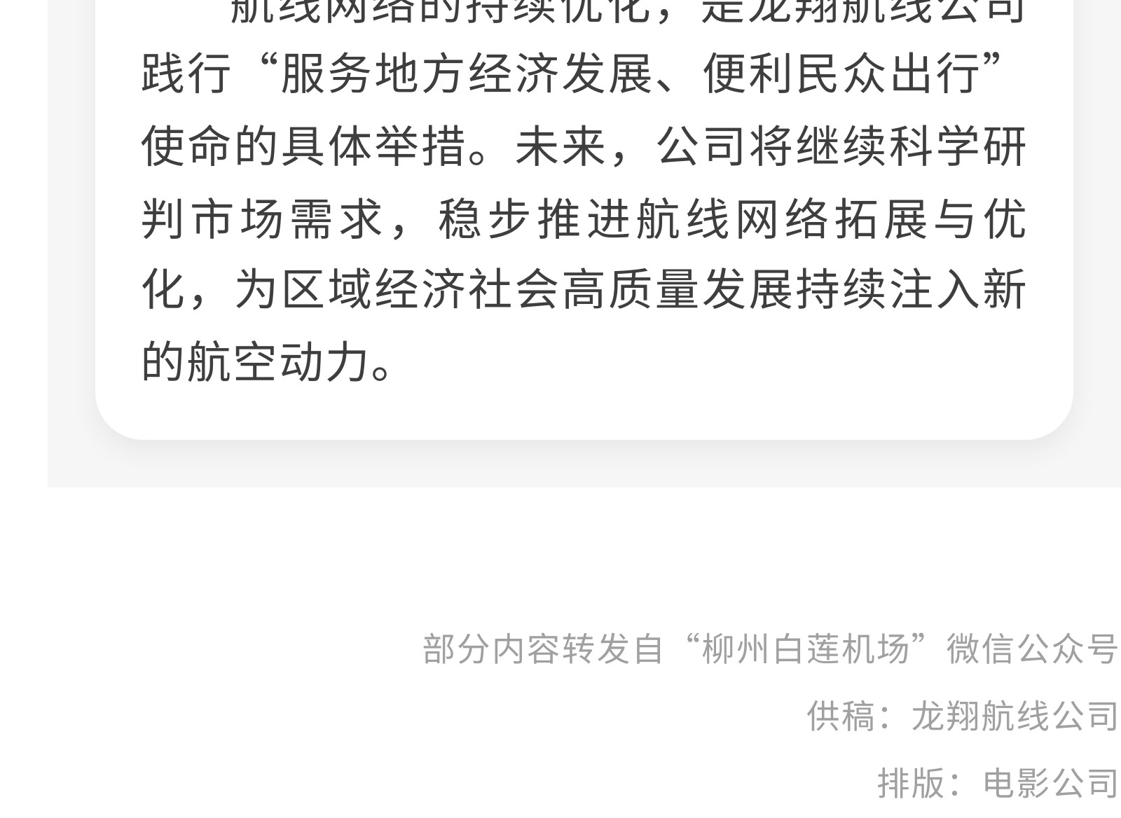 柳州又新增一航點!集團旗下龍翔航線公司冬春航季持續織密航線網絡 發布時間:2025年10月17日 10時來源:本站原創瀏覽:70 人次