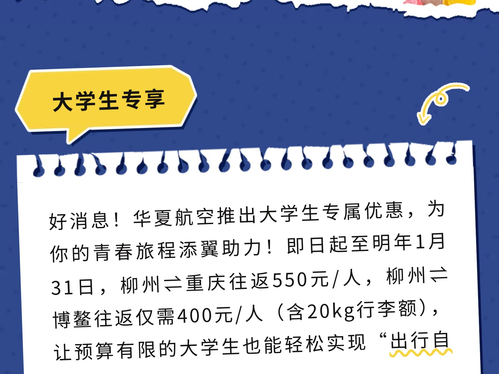 【青春專線】柳州?重慶/博鰲大學生機票來襲!雙向奔赴正當時 發布時間:2025年12月02日 10時來源:本站原創瀏覽:68 人次