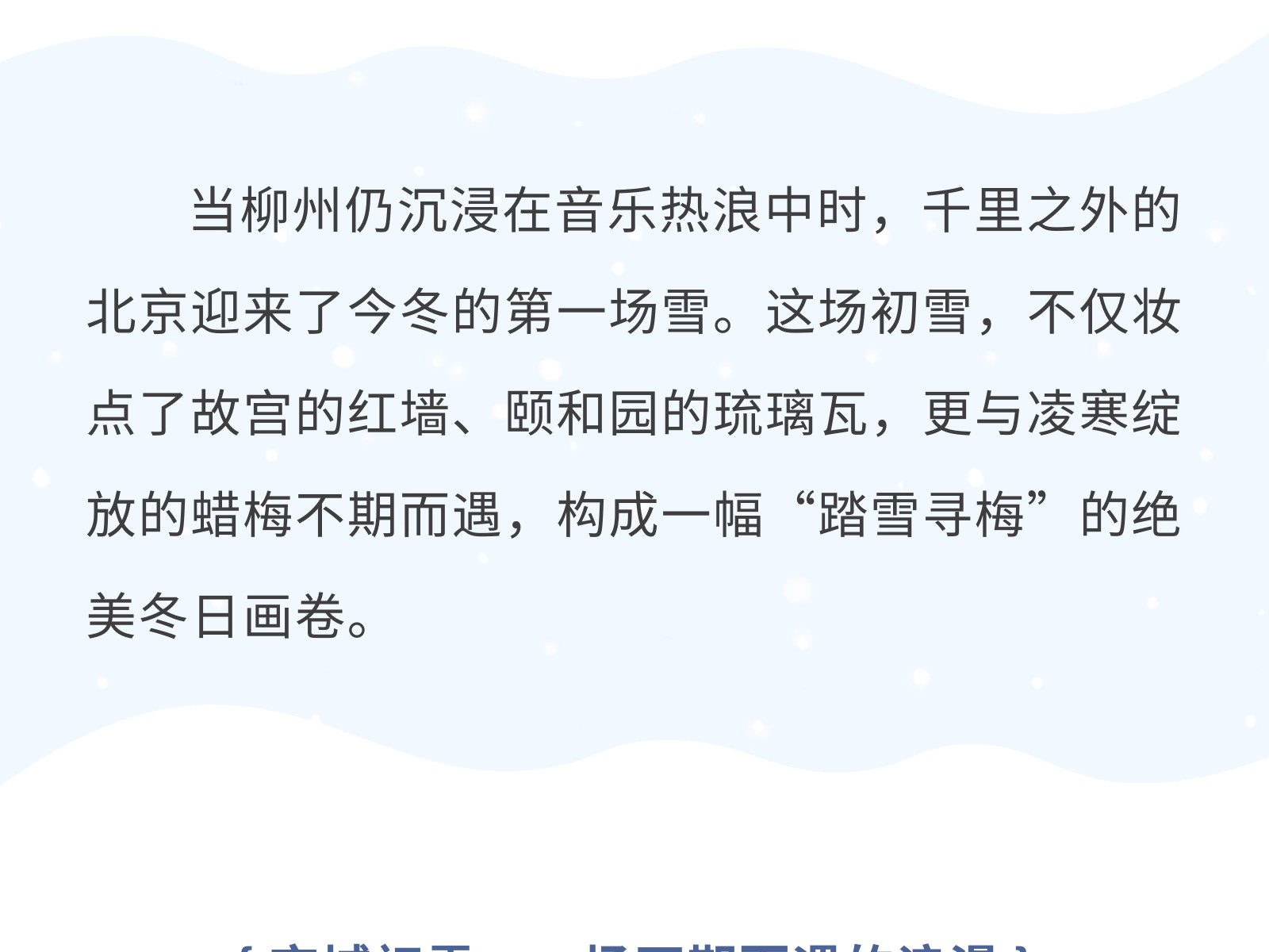 北京初雪已定檔!飛赴冬日限定浪漫,共賞踏雪尋梅的詩(shī)意 發(fā)布時(shí)間:2025年12月14日 10時(shí)來源:本站原創(chuàng)瀏覽:65 人次