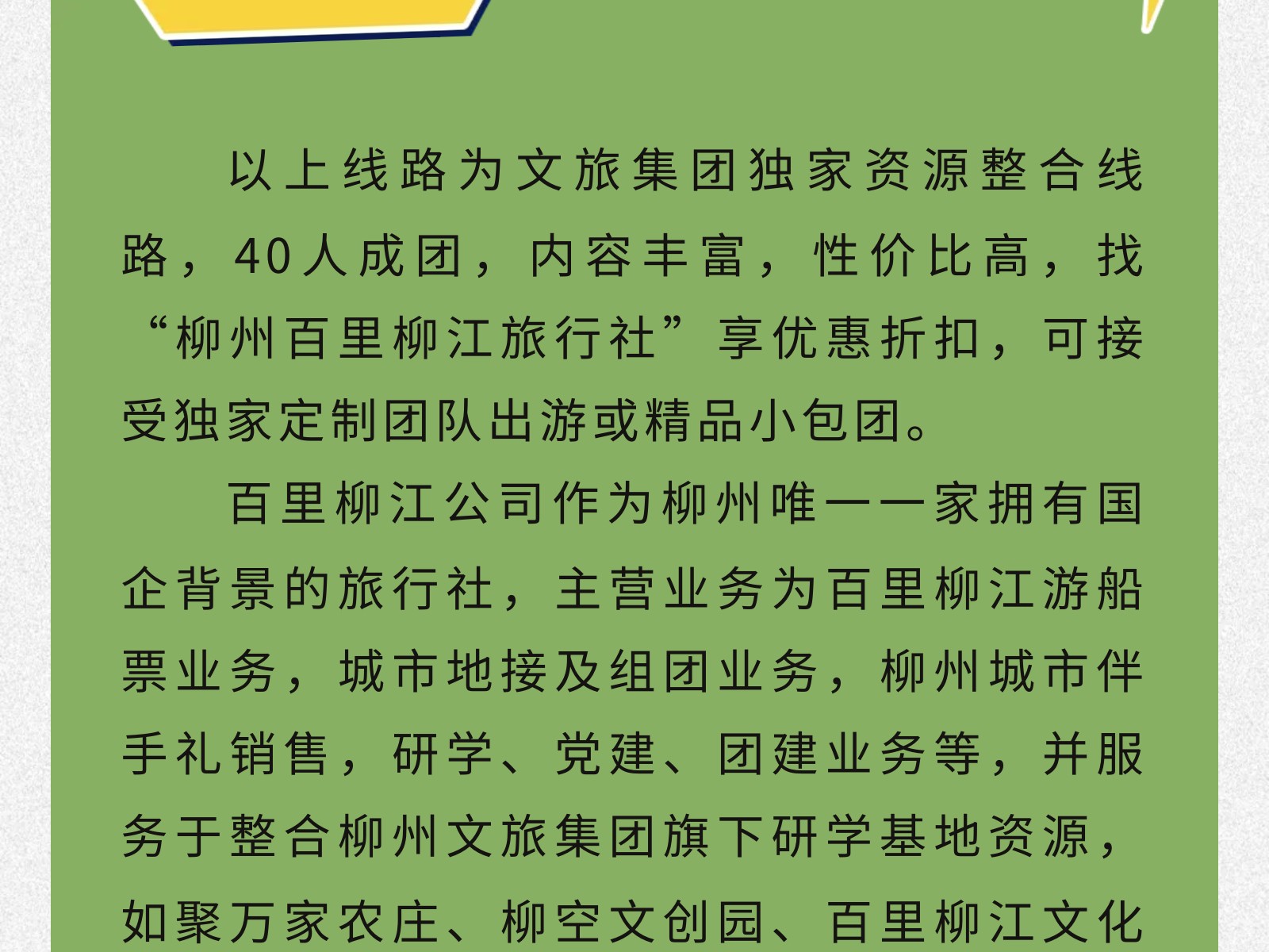 百里柳江旅行社專屬特色線路重磅發布!主題一日游獨家推薦! 發布時間:2025年11月01日 10時來源:本站原創瀏覽:40 人次