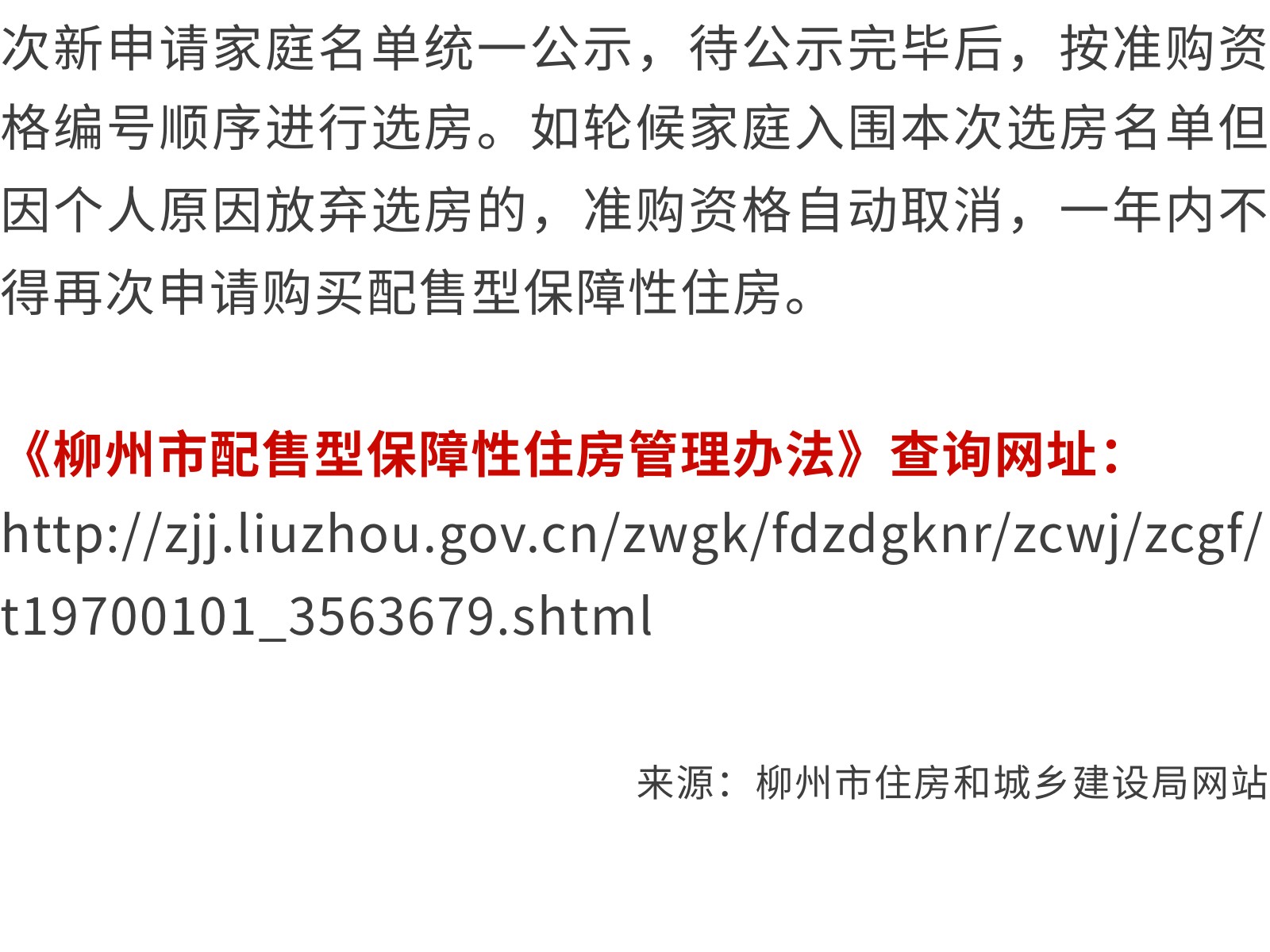 柳州市第二批配售型保障性住房配售公告 發(fā)布時(shí)間:2025年11月08日 11時(shí)來(lái)源:本站原創(chuàng)瀏覽:17 人次