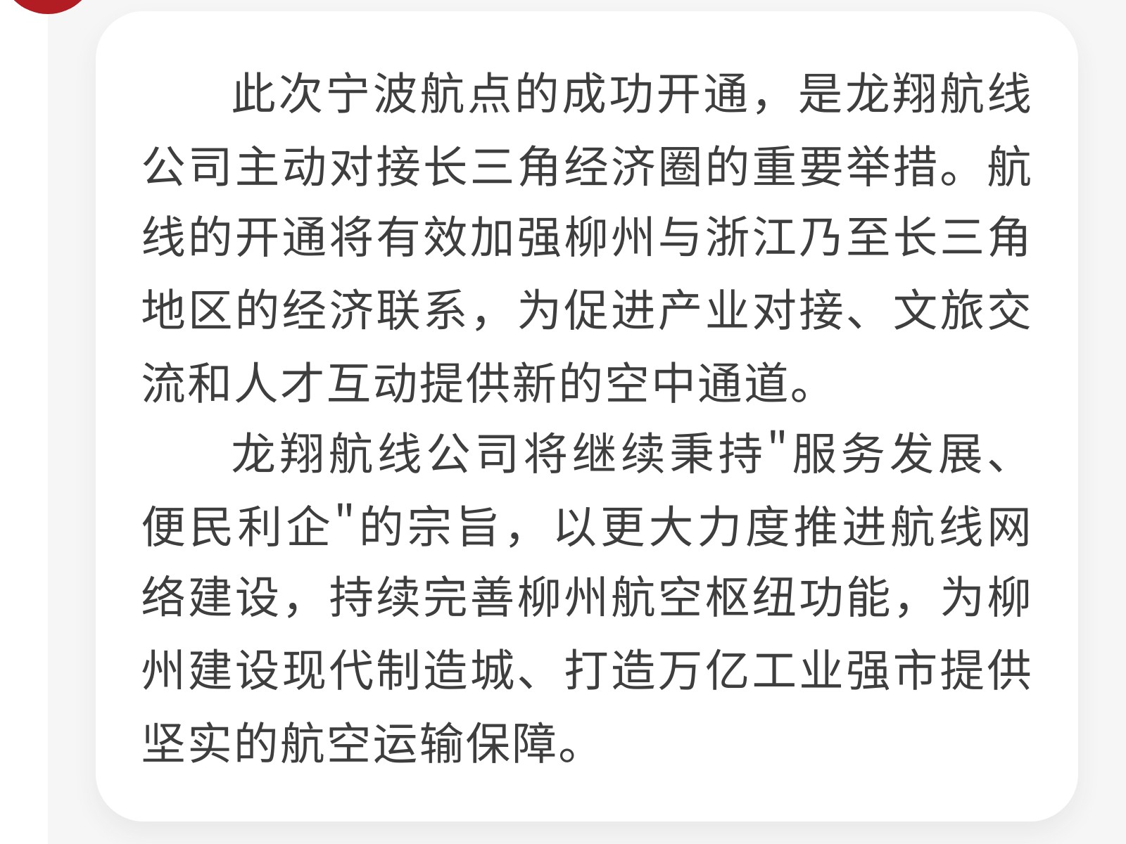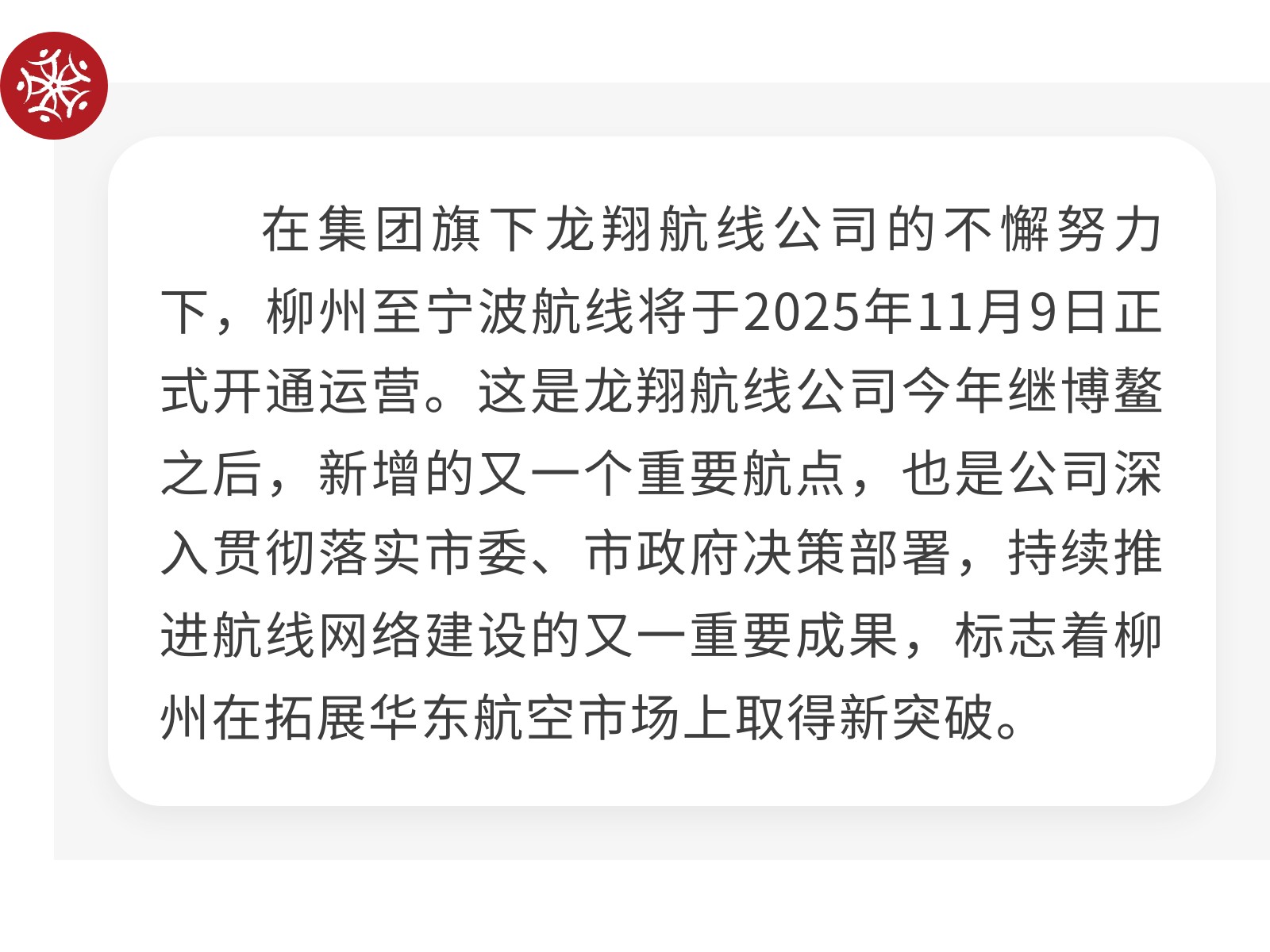 航線布局再突破!集團旗下龍翔航線公司成功開通寧波新航點 發布時間:2025年11月12日 11時來源:本站原創瀏覽:13 人次