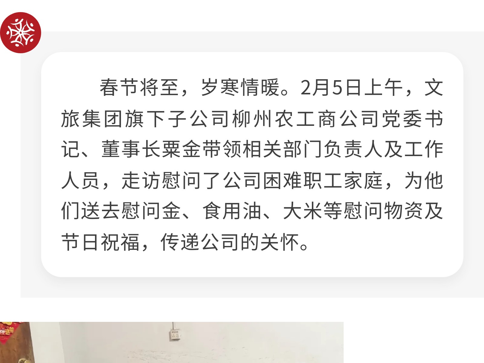 關懷暖寒冬 真情潤心田——柳州農工商公司工會組織開展困難職工走訪慰問活動 發布時間:2026年02月06日 12時來源:本站原創瀏覽:58 人次
