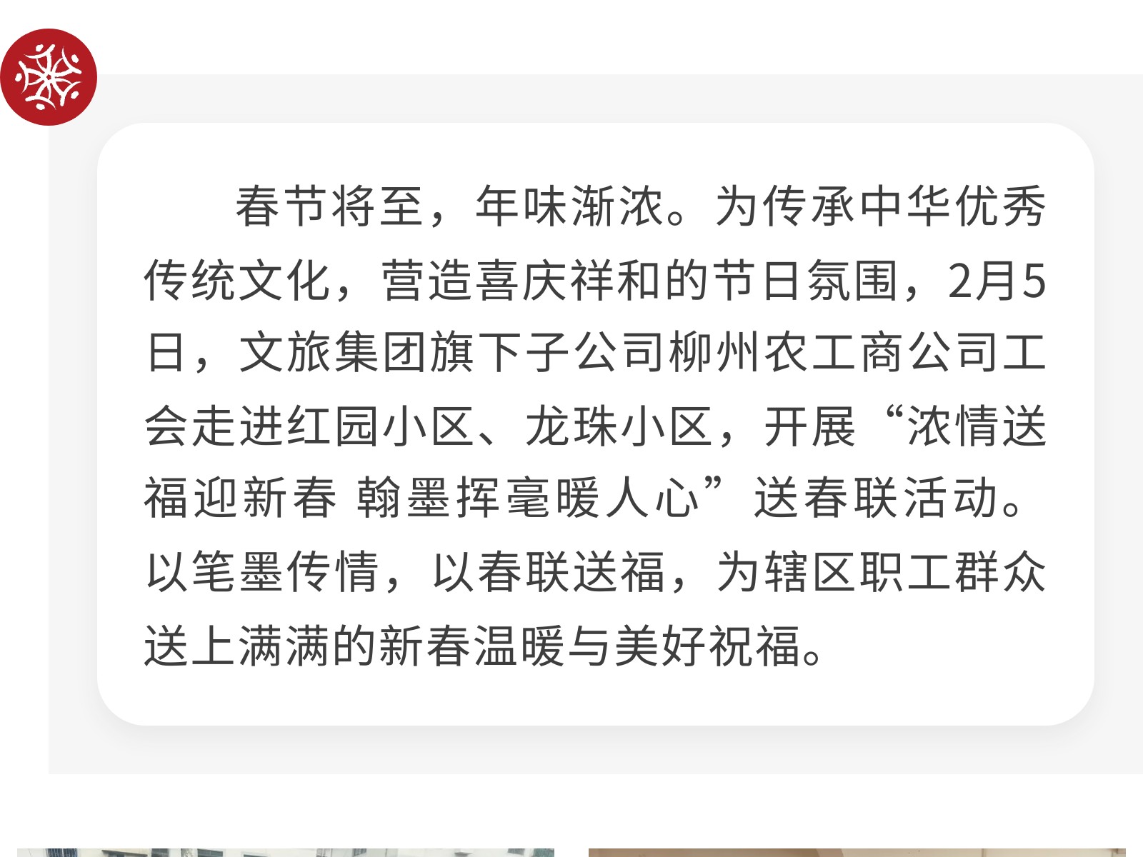 濃情送福迎新春 翰墨揮毫暖人心——柳州農工商公司工會開展送春聯活動 發布時間:2026年02月06日 12時來源:本站原創瀏覽:58 人次