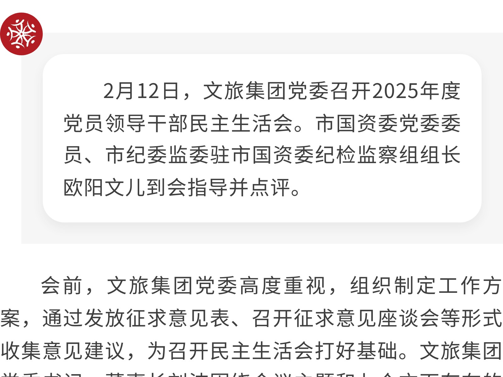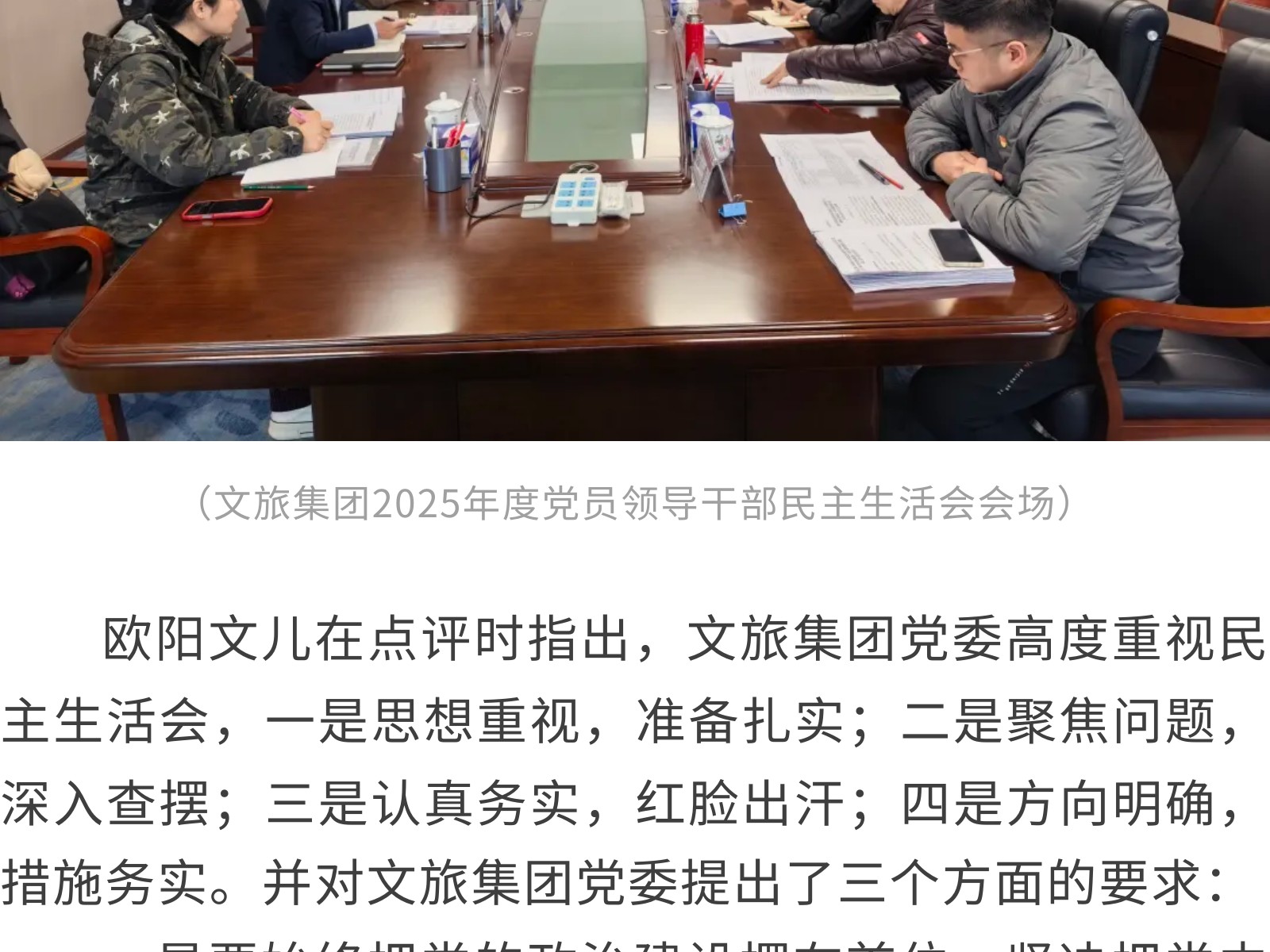 【黨建引領】文旅集團黨委召開2025年度黨員領導干部民主生活會 發布時間:2026年02月12日 13時來源:本站原創瀏覽:59 人次