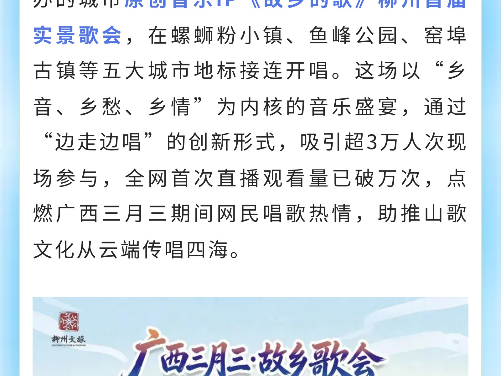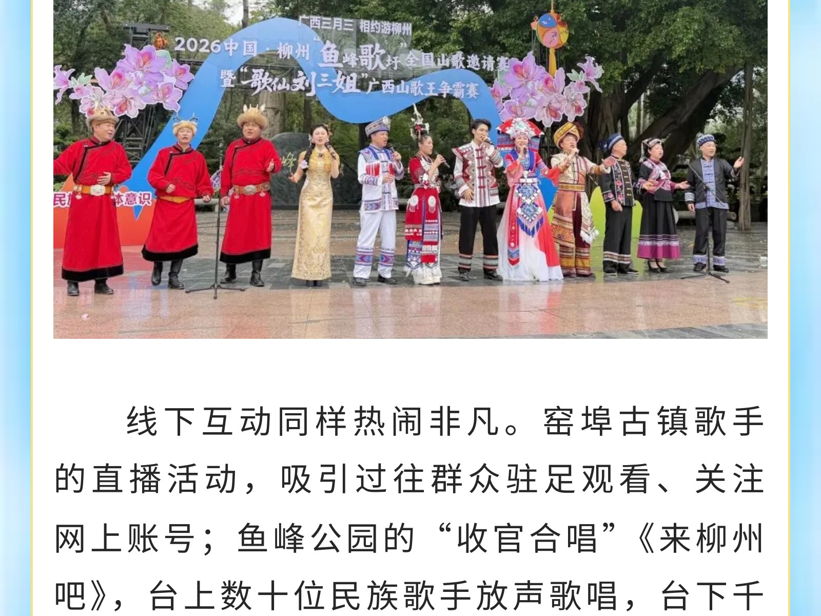 【山水為幕 鄉音為弦】《故鄉的歌》柳州首屆實景歌會唱響城市文化新聲 發布時間:2026年04月25日 16時來源:本站原創瀏覽:5 人次