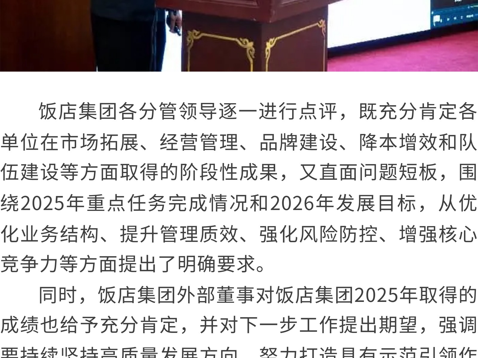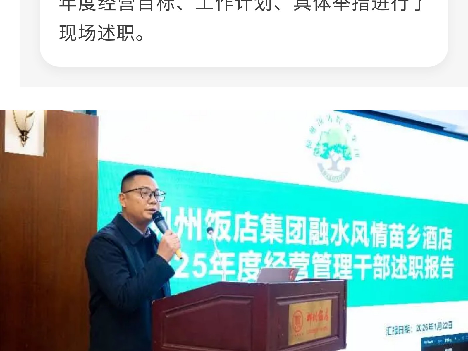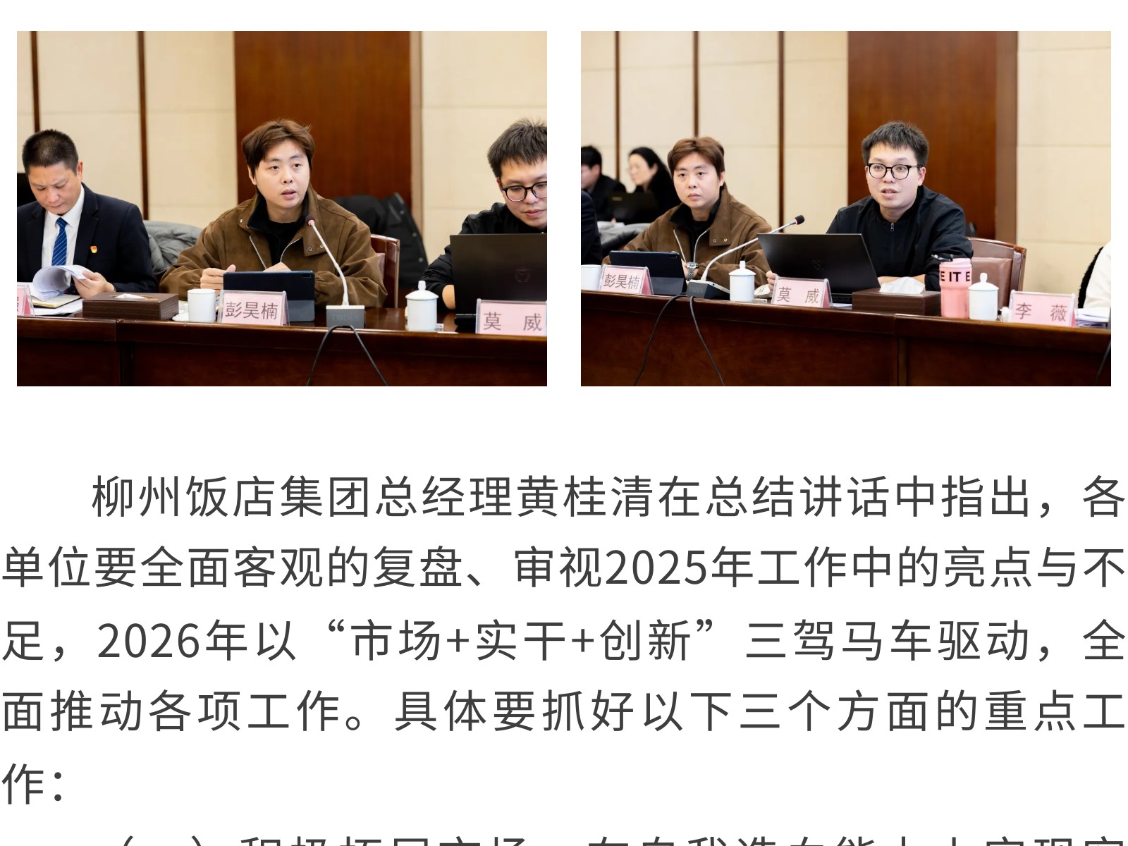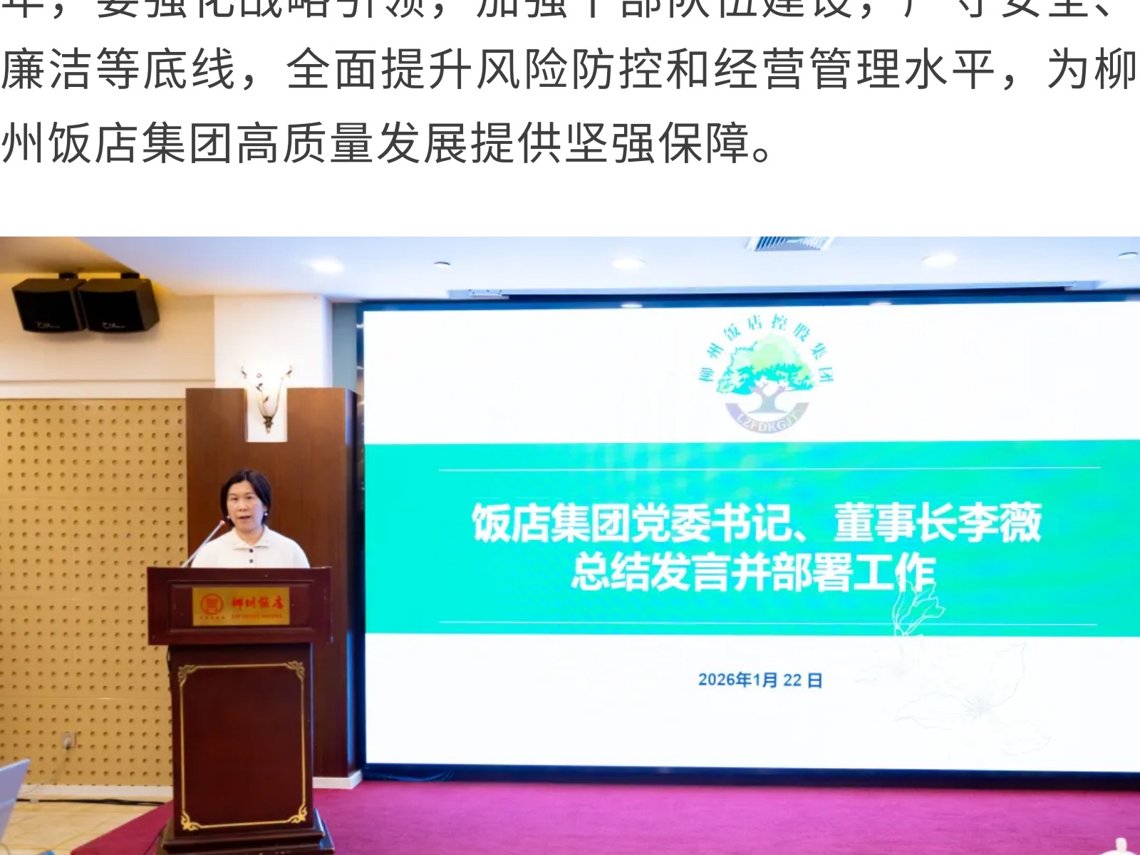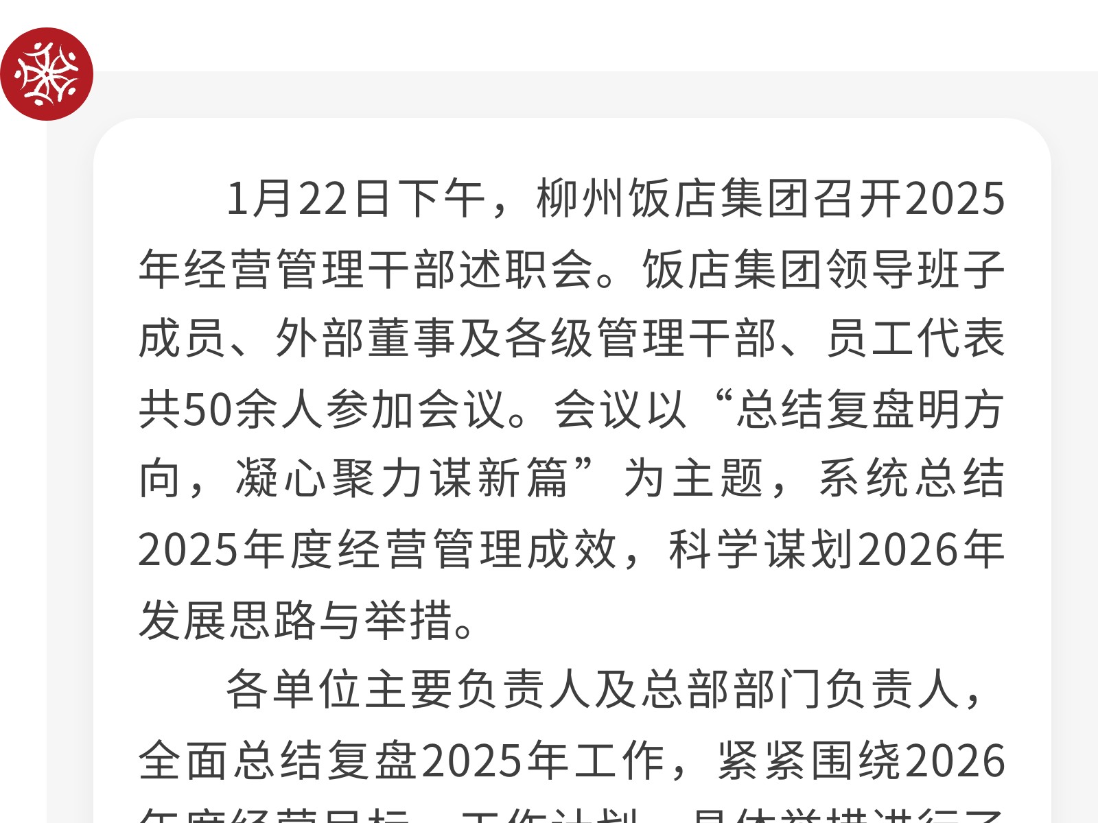 述職亮答卷,乘勢開新局——柳州飯店集團召開2025年經營管理干部述職會 發布時間:2026年01月29日 10時來源:本站原創瀏覽:39 人次