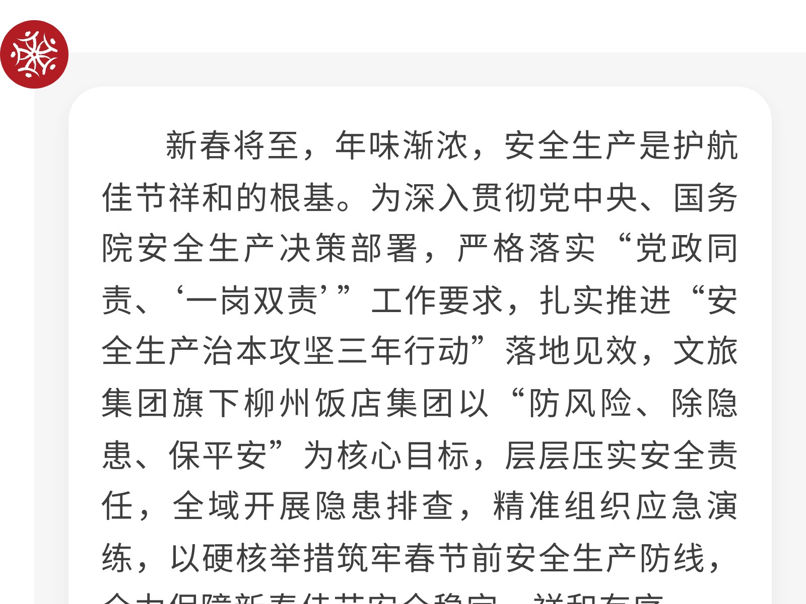 織密安全防護網 護航新春平安年——柳州飯店集團開展春節前安全生產系列活動 發布時間:2026年02月13日 13時來源:本站原創瀏覽:15 人次